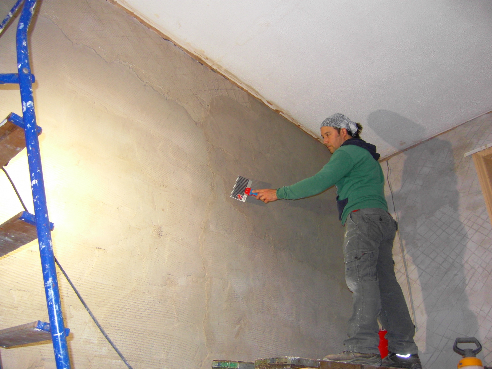 traditional lime render & lime plaster in old Georgian Ashlar stone house.