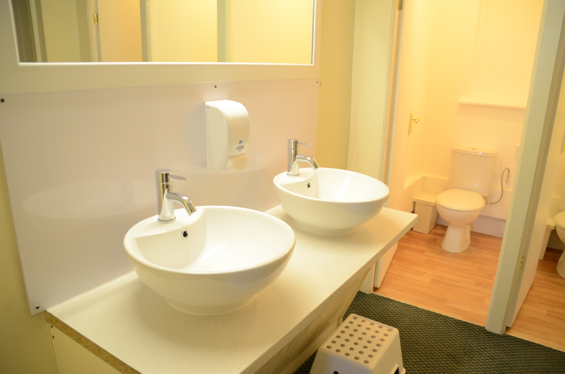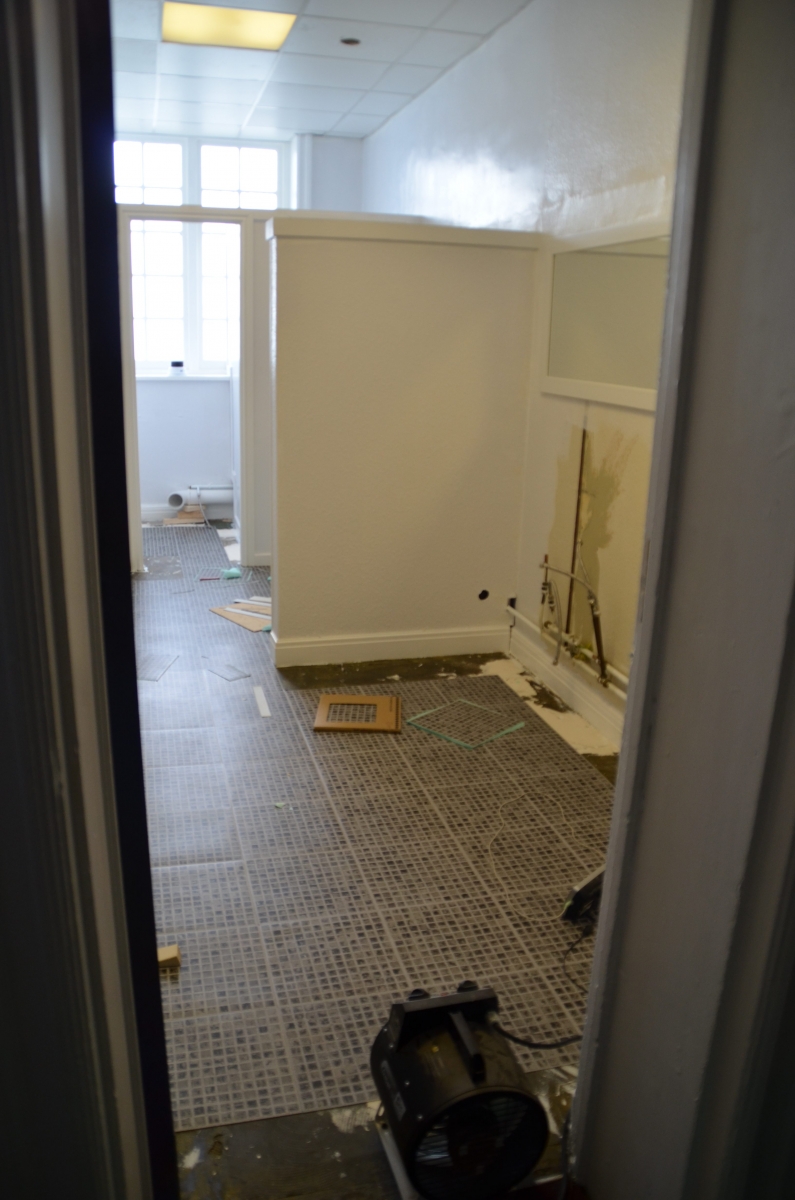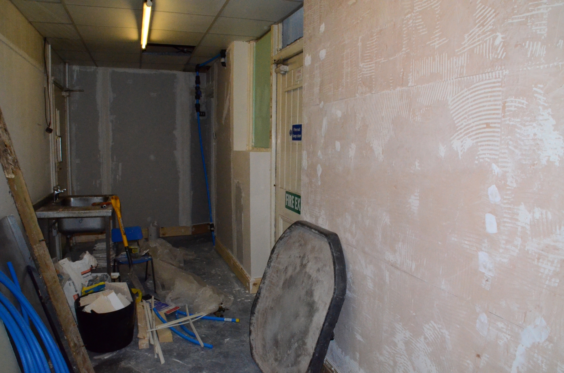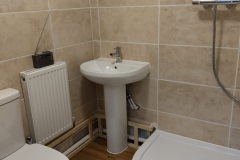 refurbished vanity units, new worktop area, new sings and plumbing, new toilettes and lino on floors.