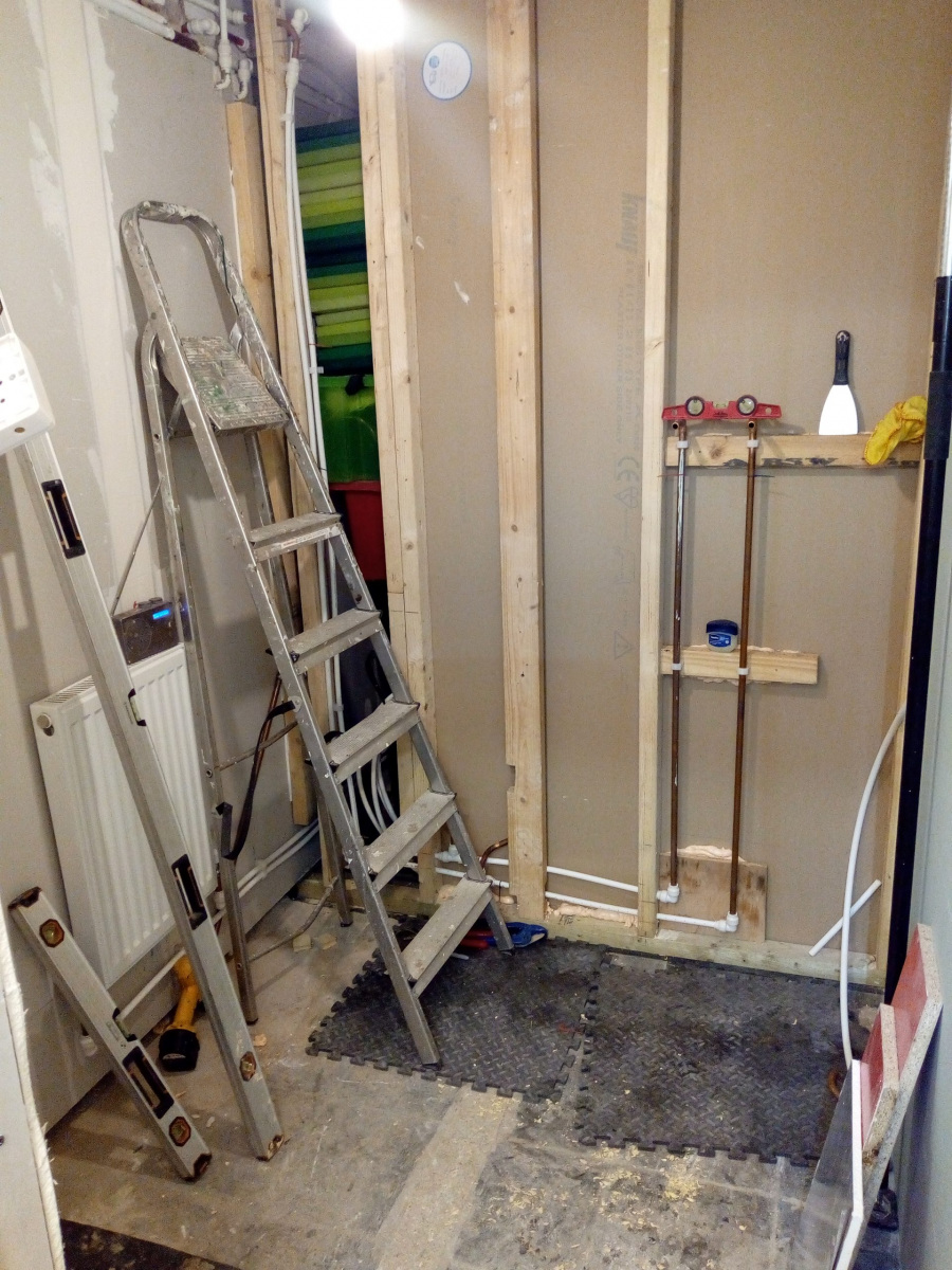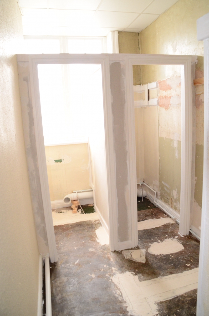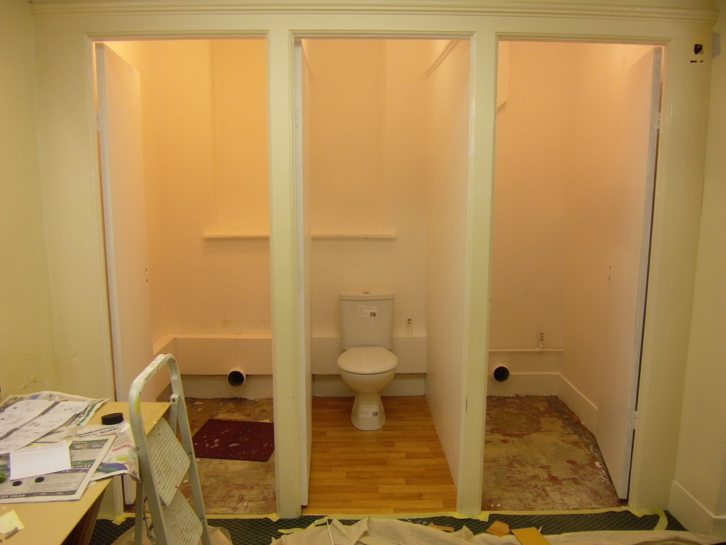 newly built vanity double units, new sinks, plumbing and new toilettes at the back.